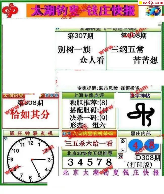 钱庄快报2025308期3d图谜