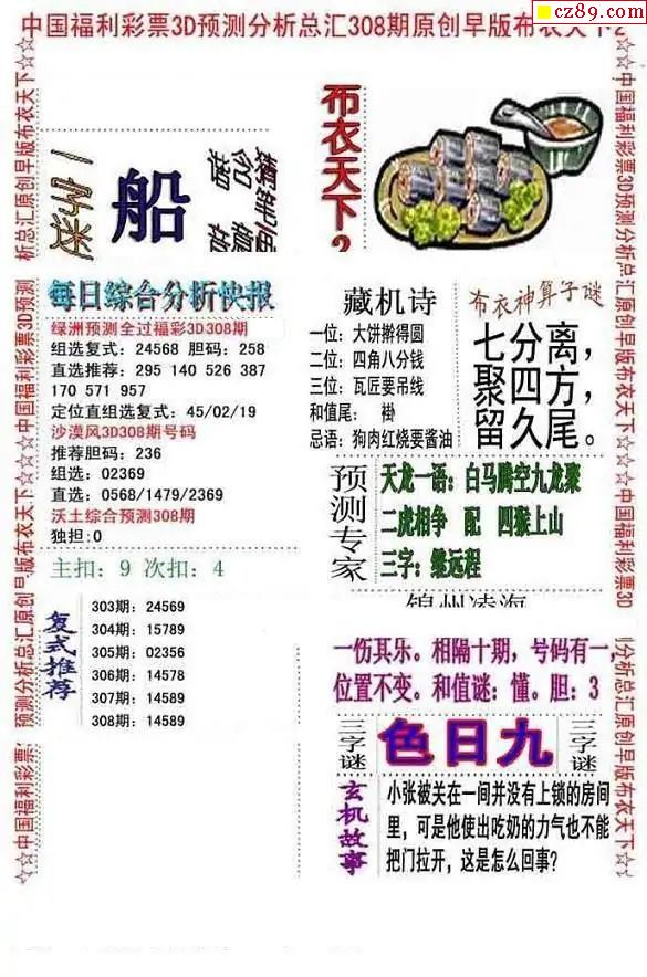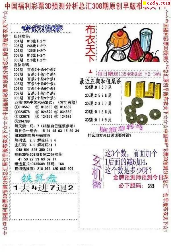 早版布衣2025308期3d图谜